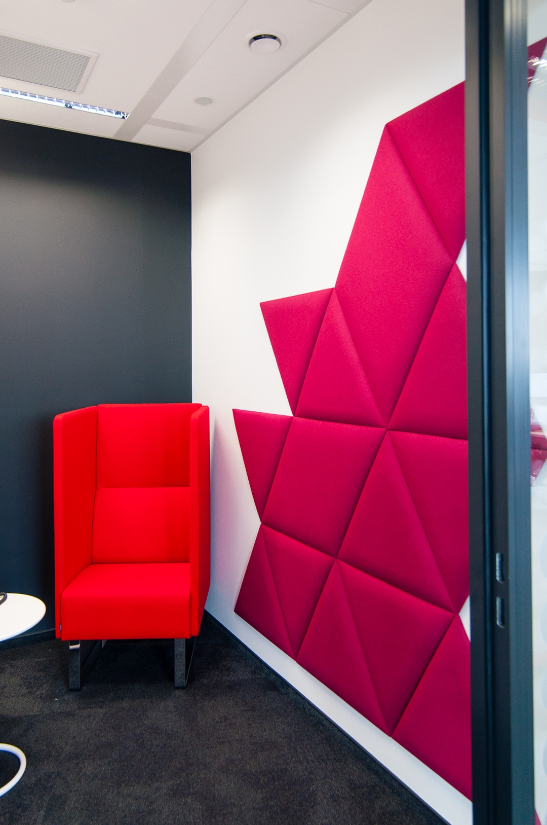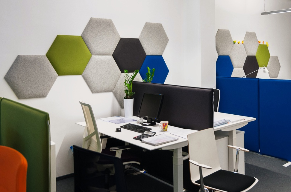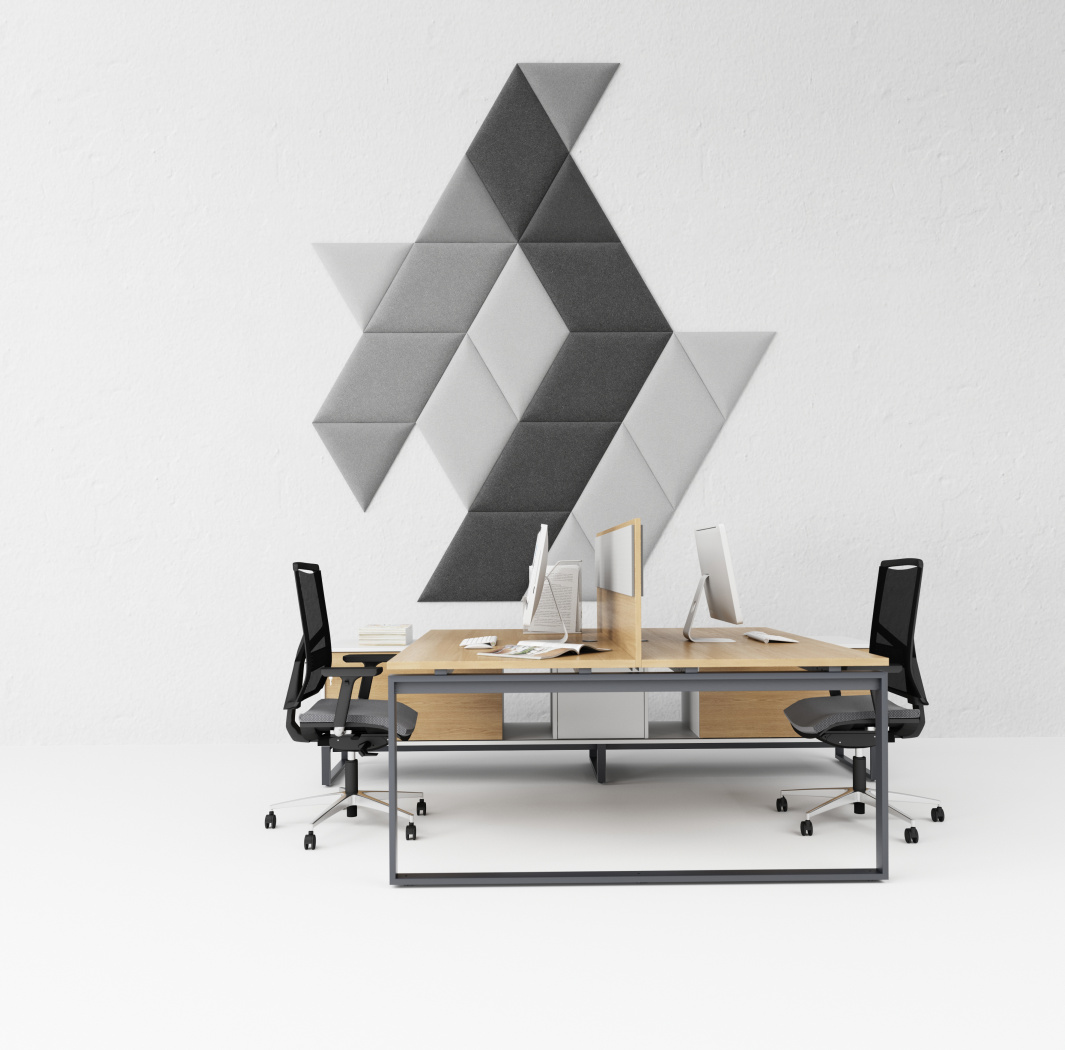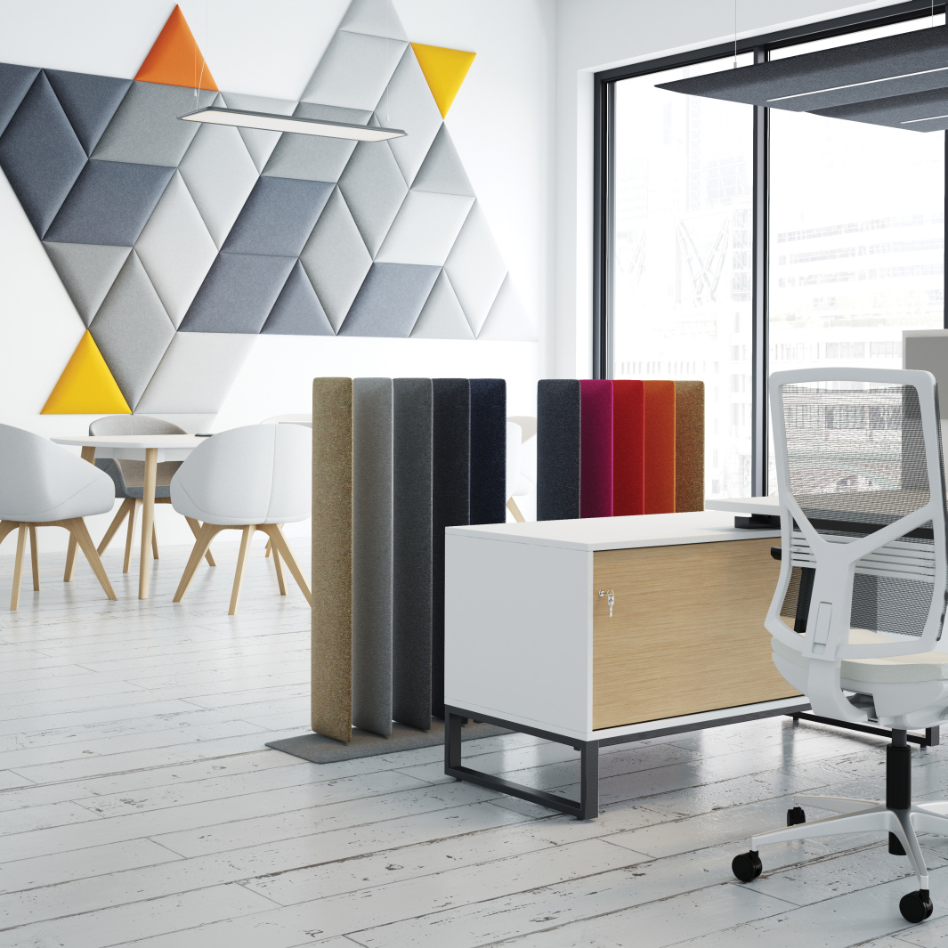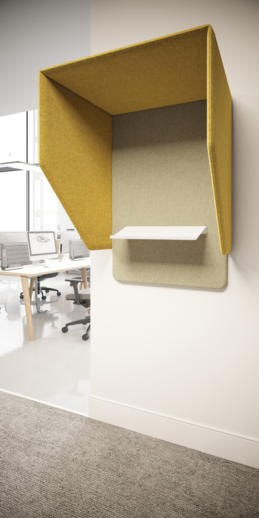 Improve the sound environment of the workplace with style. The HUSH PAD collection not only makes for a playful, attractive look, it also stops sound waves effectively, thereby improving the room’s acoustics. HUSH PAD panels can be mounted on the wall, hinged from the ceiling or used as freestanding privacy screens.