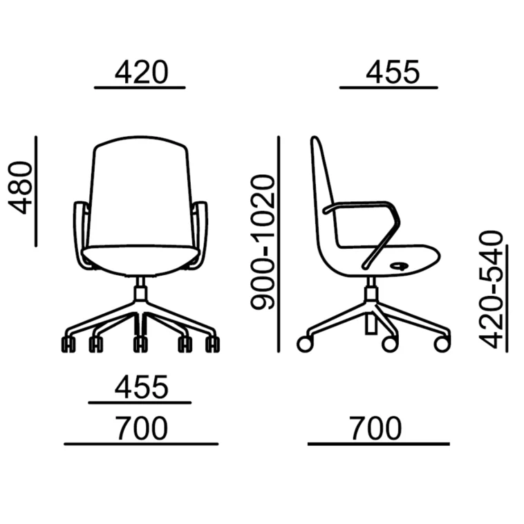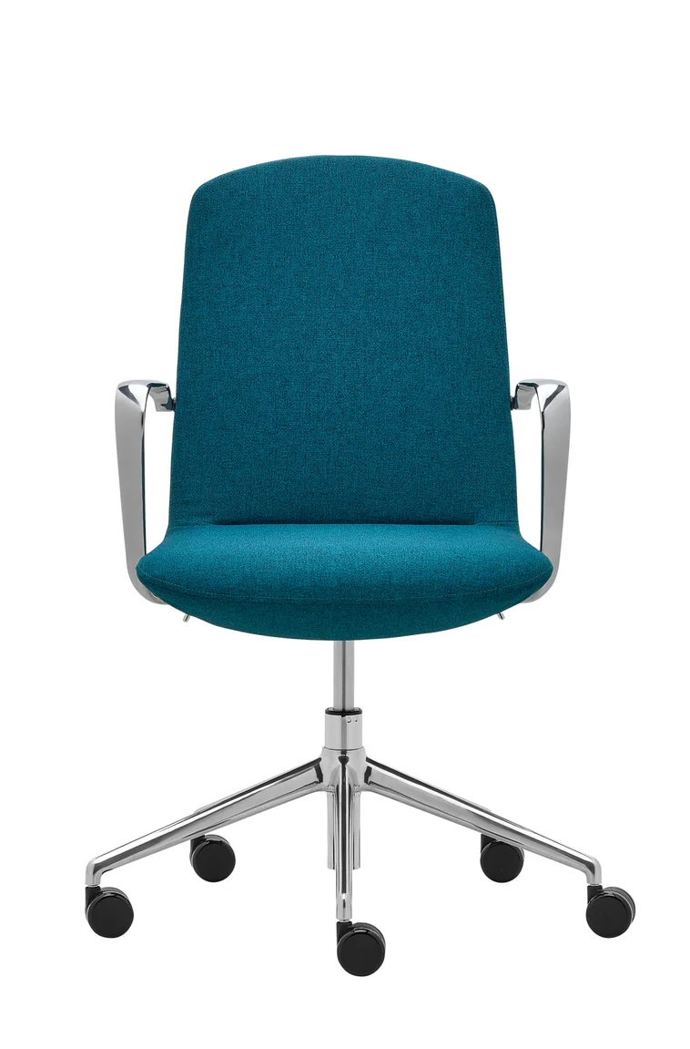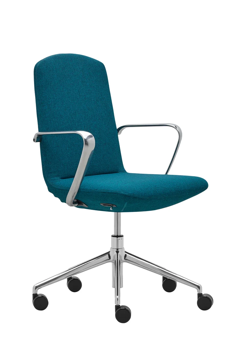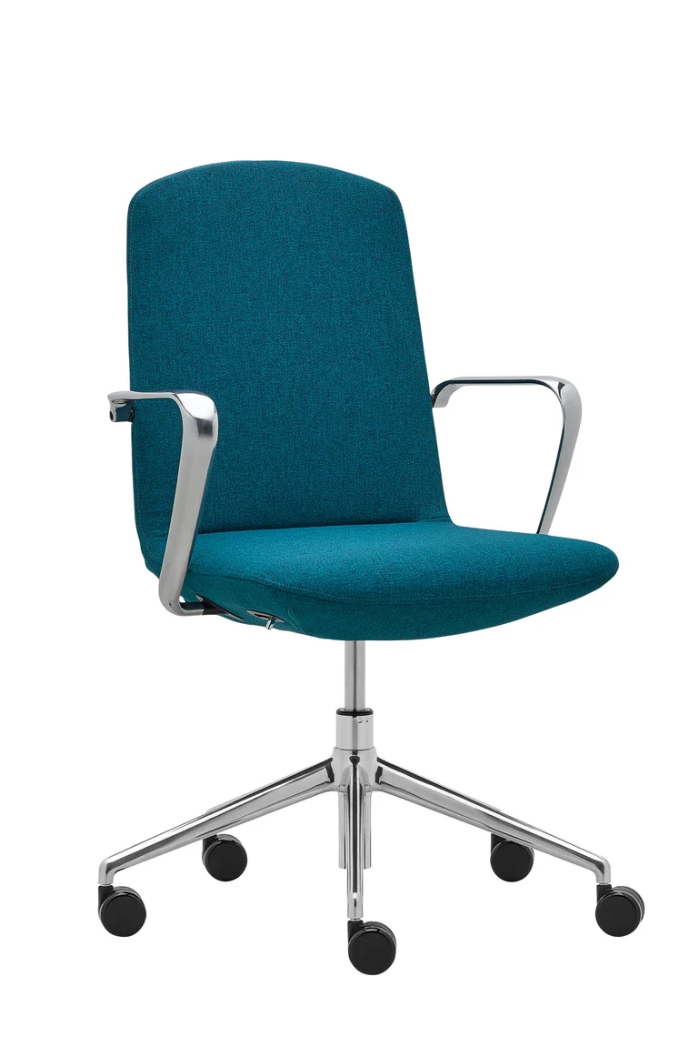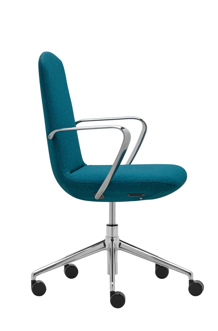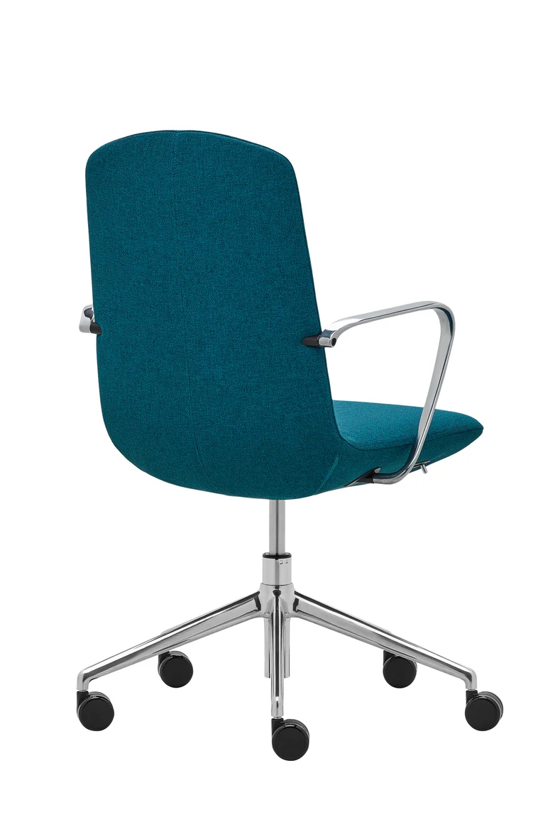 A premium choice for executive offices and meeting rooms. The high backrest adds a touch of authority, while the lower height is perfect for side chairs. Fully upholstered, with a swivel five-star base and armrests, it ensures comfort during intense work sessions.
